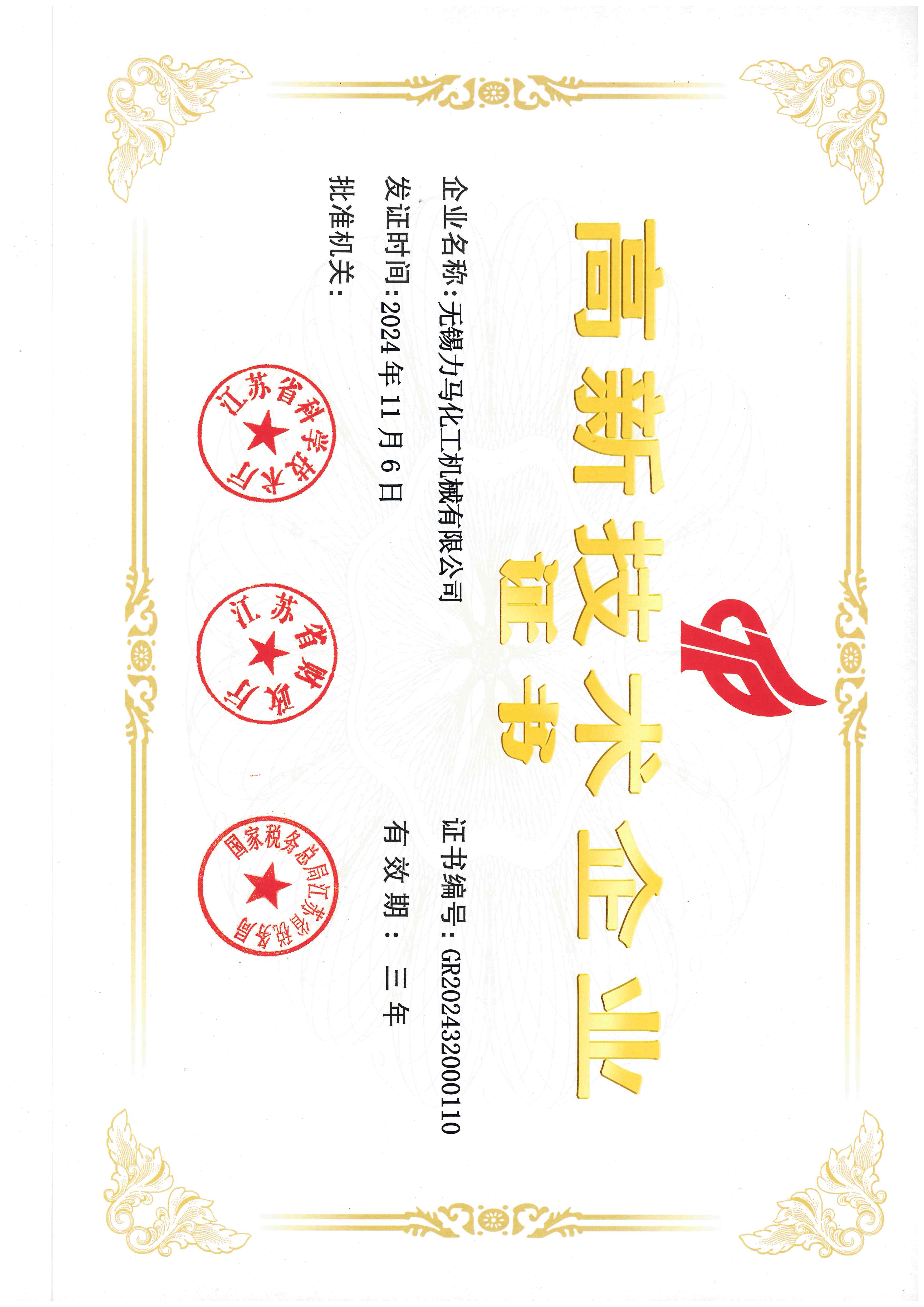 高新技术企业证书